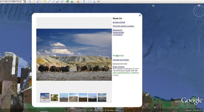 Please click on the link below to get slightly larger copies of the images. To get the full impact, please click the ‘Download’ link after clicking on a given pic. I really love the first photo, the one with the herd of musk oxen (or is it oxes? certainly not oxii, haha)
