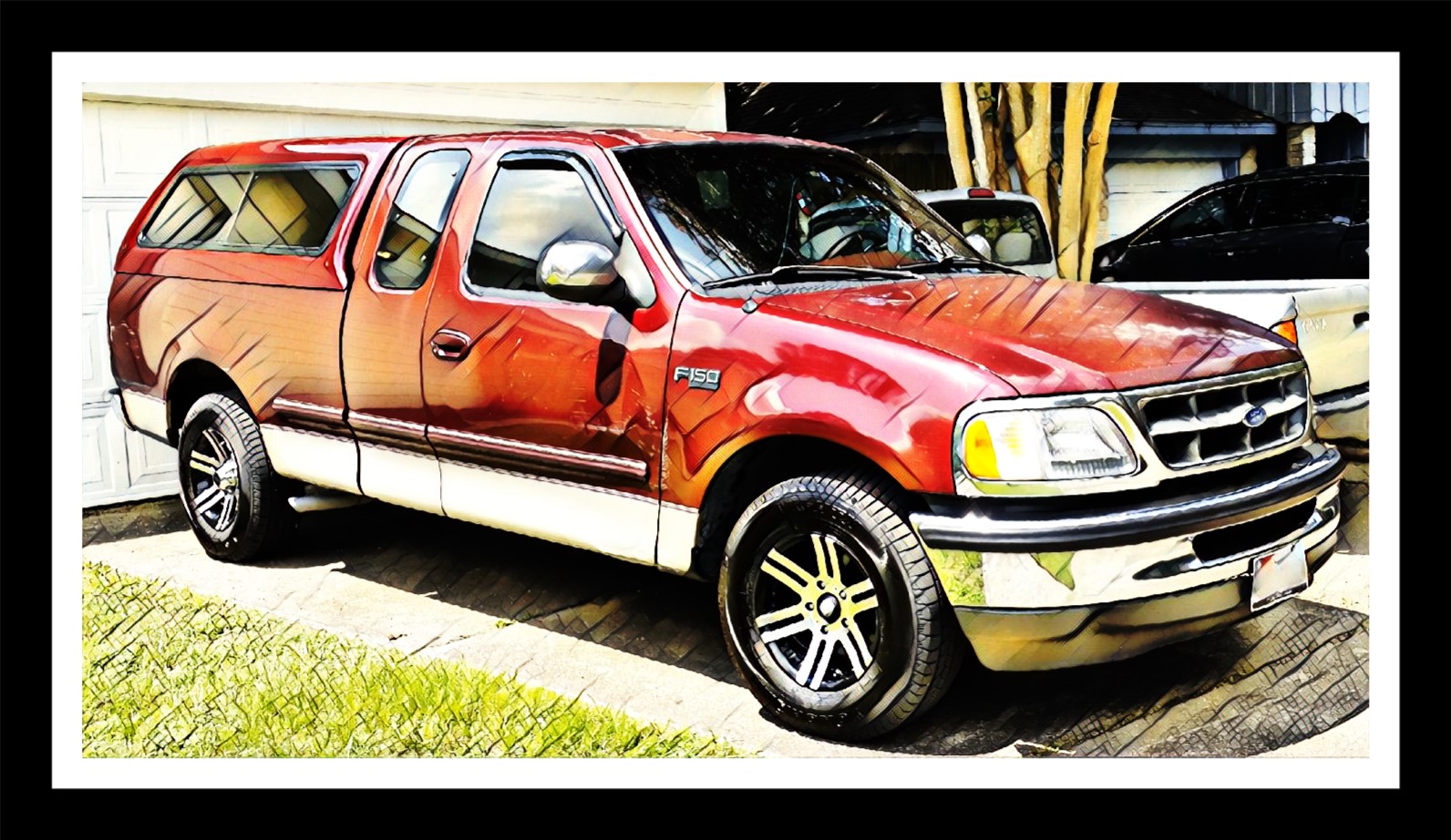 This is a truck. A Ford, to be more precise. An F150, to be even more precise. A 1997 F150, V8, automatic in a regular cab, short bed chassis with add-on camper top, to be bordering on motorhead precision here.
