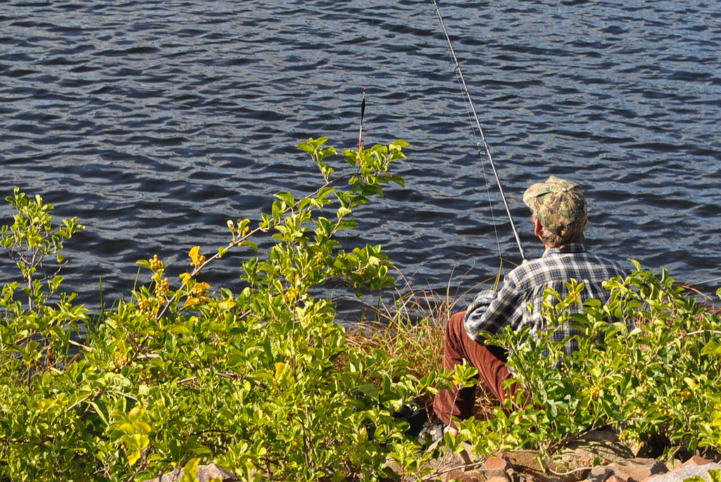 [Teacher sits solo, fishing. What happened here?]