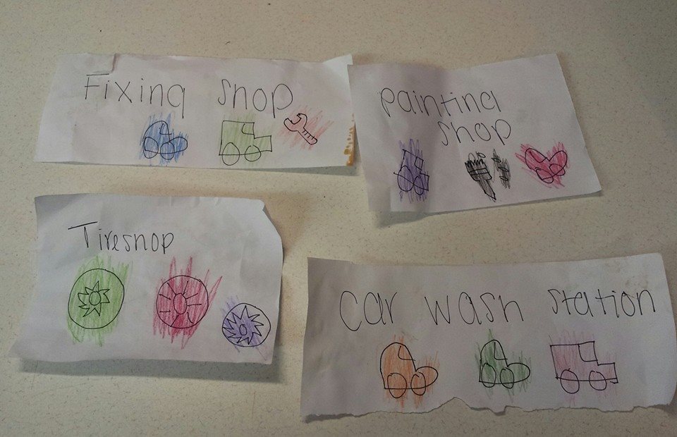 | Shop titles November 14, 2014 Mamasan made some signs for grandboysan to use when he’s playing with his cars. Now they have places to go! He did the coloring bits of course | Thumbnail![]() |