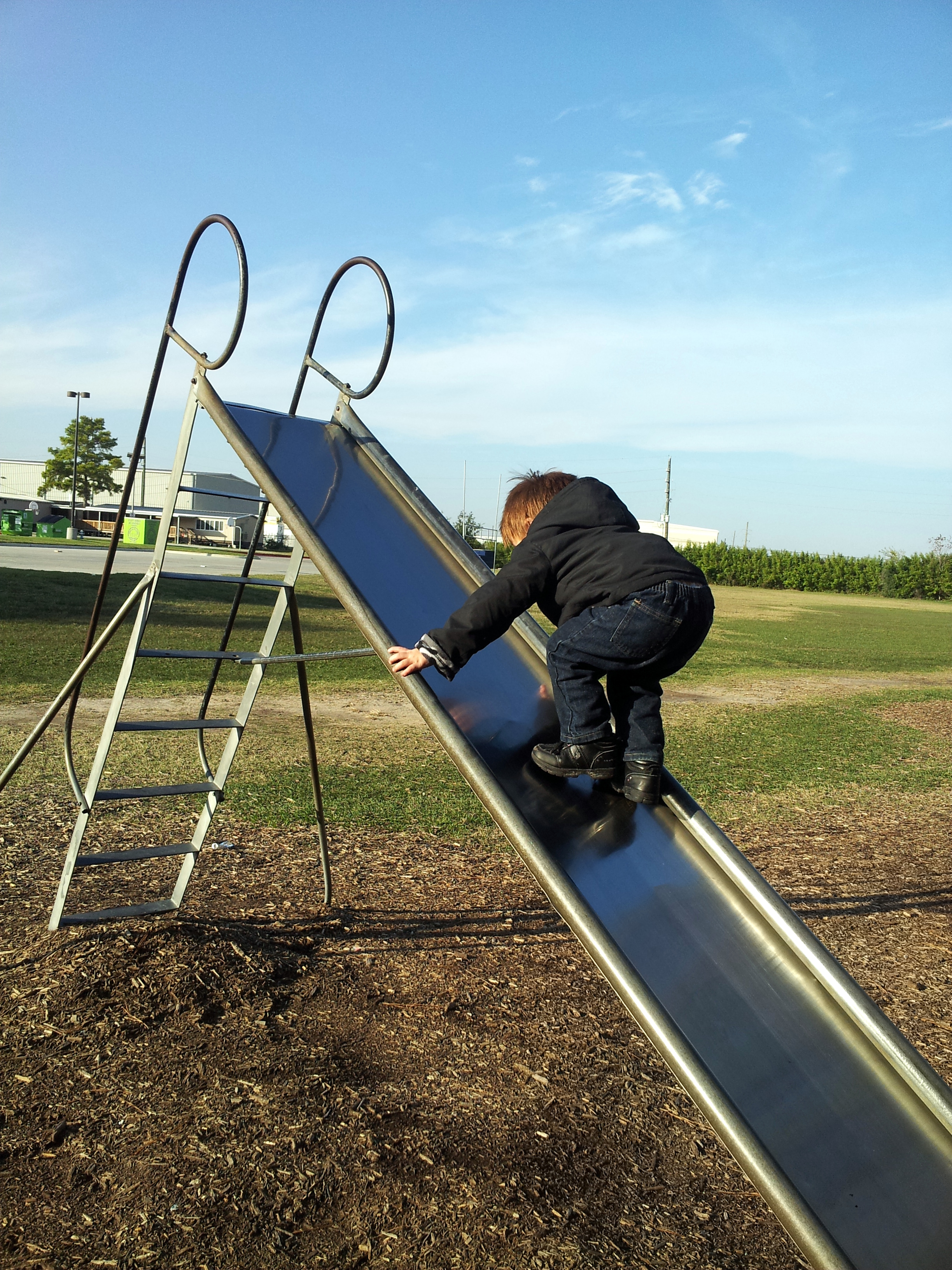 | Way out October 11, 2014 Ah. It seems my grandson doesn’t just exit a slide in the play area as much as he propels himself out with all the gusto of a fired-up paratrooper… and follows up with karate parkour moves | Thumbnail |