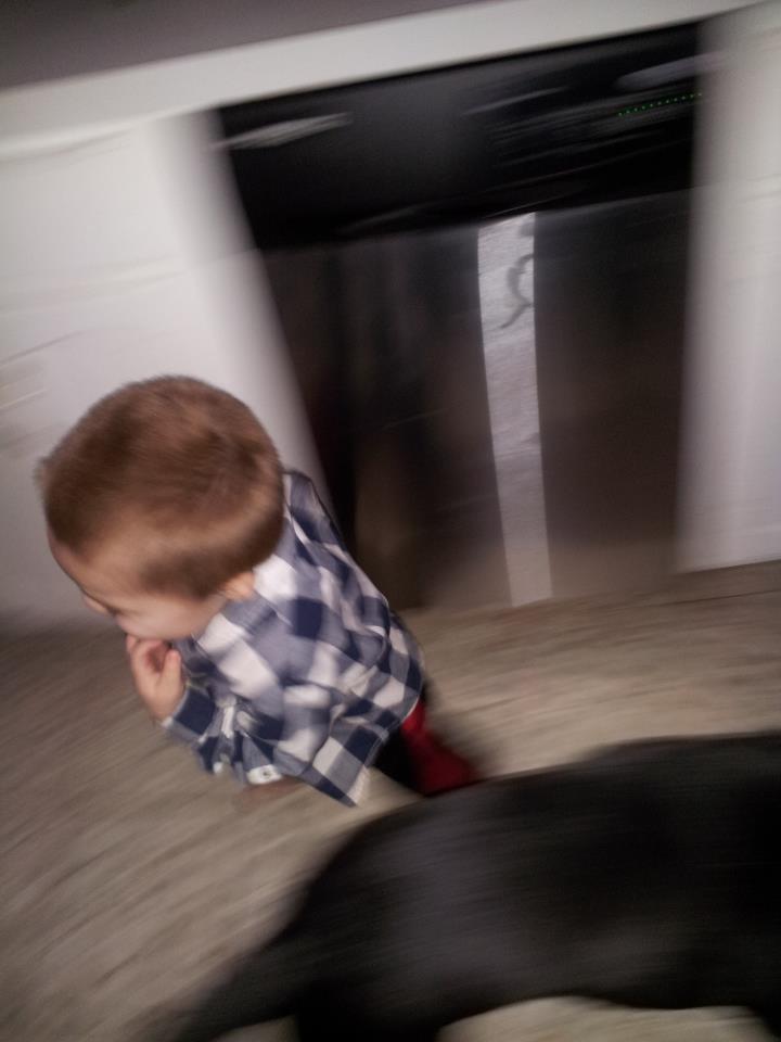 | @home September 23, 2014 I’m working from home today and have an interesting peek of a normal day in the household.Ā My grandson just came in through the doggie door. | Thumbnail |