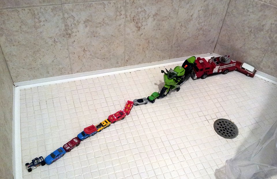 | One thing lead to another January 26, 2014 It is 12:47 pm sunday afternoon and my grandson’s toy truck is broken on the kitchen counter. I note this because at around 10:45 this morning i put the broken toy on the counter and turned around to get some super-glue. Suddenly it’s two hours later and the guest bathroom is scrubbed, all the tile floor is swept & mopped, area rugs vacuumed, laundry half-done and dishes loaded & dishwasher running. It all started because when i turned to get the super-glue i noticed that i needed to clear a spot on the kitchen table to make room for the super-glue mini-project. In doing that i noticed the floor needed sweeping. That led to dishes, which led to… And the toy is still not worked on. I can see how college house parties can get out of hand very quickly #onethingleadtoanother | Thumbnail |